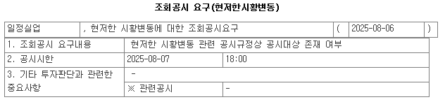 이는 투자자 보호와 공정한 가격 형성을 목적으로 하며, 기업은 요구받은 날로부터 1일 이내에 공시해야 합니다.