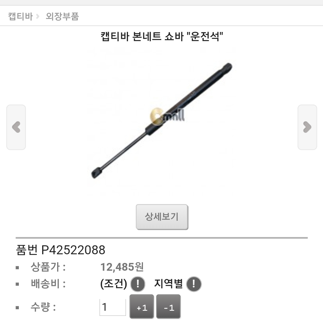 쉐보래 캡티바 노후 부품 교체 다이 자료 - 본넷쇼바,트렁크쇼바등등